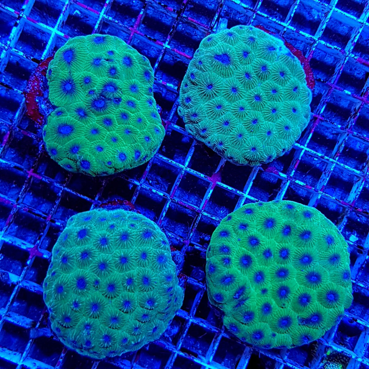 montastrea (premium) heeft matige tot felle verlichting nodig, afhankelijk van de diepte van het aquarium. Een combinatie van blauw en wit licht bevordert een optimale groei en kleuring.